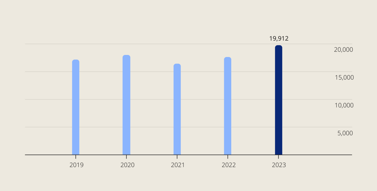 En 2020, nuestros ingresos totales fueron de 10.6 billones de coronas danesas.