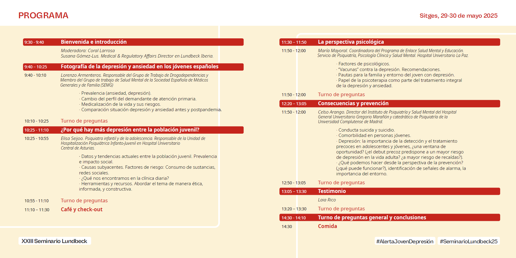 Bienvenido/a al área de prensa del #SeminarioLundbeck25. En este espacio encontrará todo el material informativo relacionado con el evento: programa oficial, nota de prensa, documentación adicional y presentaciones de los ponentes, disponibles para consulta y descarga. Gracias por su interés y cobertura.