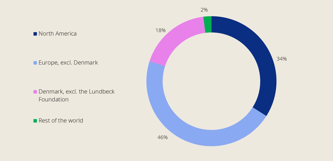 According to the Lundbeck share register, the company had approximately 66,000 shareholders at the end of 2022, representing approximately 99% of the outstanding shares. The Lundbeck Foundation (Lundbeckfond Invest A/S) is the company’s largest shareholder, holding 137,351,918 shares at the end of 2023, which equals 69% of the share capital and voting rights. The Lundbeck Foundation is the only shareholder to report a holding in excess of 5% of the share capital.