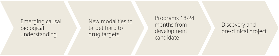 We explore new types of therapies, platforms and modalities, and areas of interest include (but are not limited to):