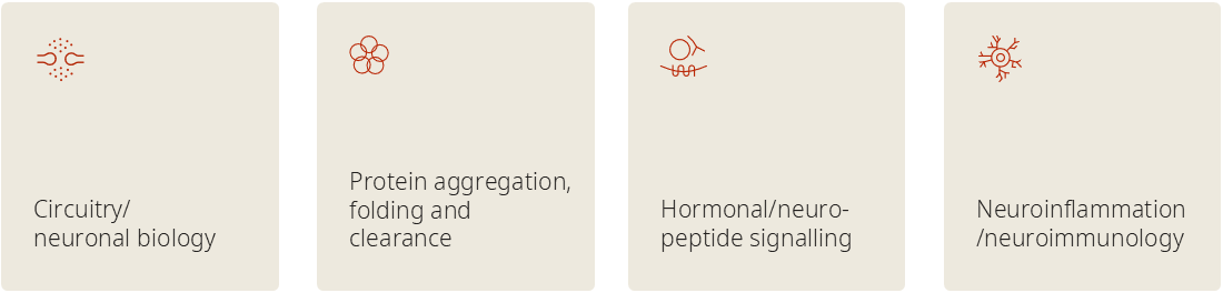 As a Focused Innovator, we actively pursue targets with well described biology for the highest likelihood of success. We put our strategic focus on partnerships across the respective fields of brain diseases within: