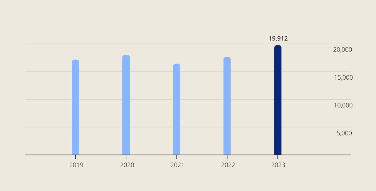 2023 회계연도 기준 매출은 한화 약 2조 7000억 (13.7 billion DKK) 입니다.