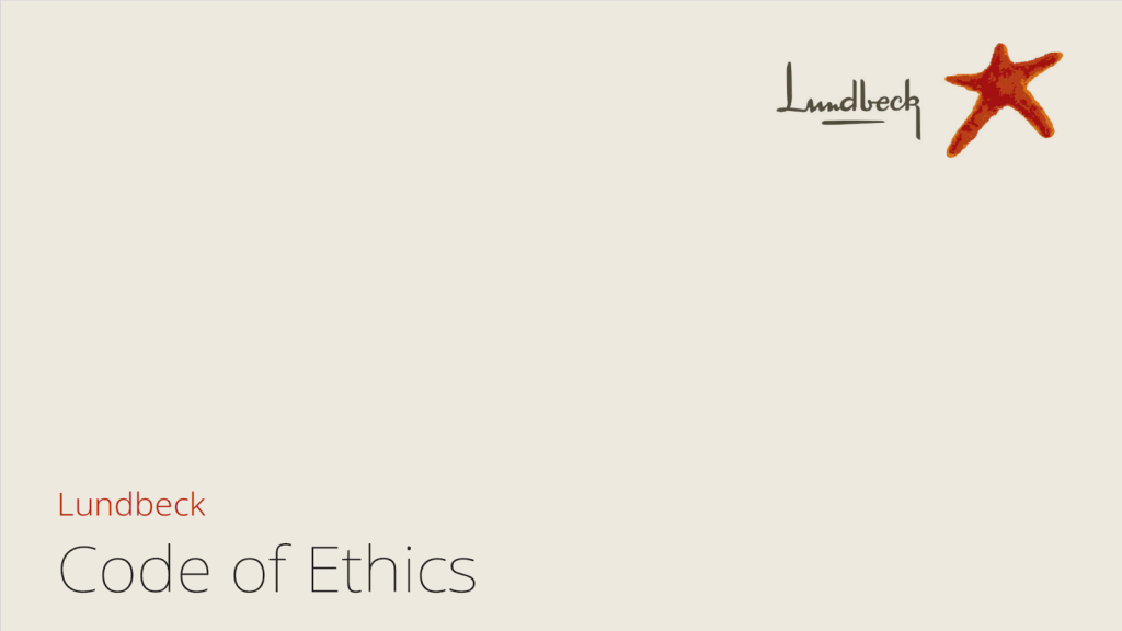 Lundbeck’s Code of Ethics is central to our compliance and ethics culture. It conveys our commitments and expectations to all employees and third parties working on Lundbeck’s behalf. For this reason, it is essential that everyone observes the Code of Ethics and, in addition, adheres to any laws, codes and regulations that may impose stricter standards.